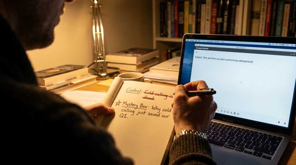 J.J. Abrams famously talked about a physical mystery box he bought as a kid and never opened. The power of the box is the infinite possibility of what could be inside. In your inbox, the subject line is the box. The email body is the reveal.