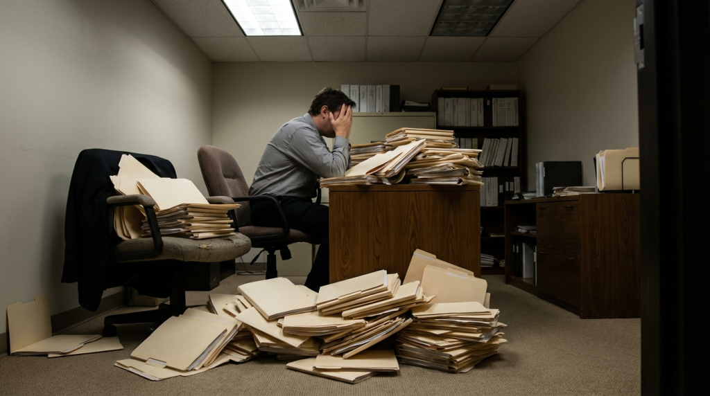 The problem was not my discipline. The problem was complexity. Every system I built required too many decisions per file. When sorting a single document requires thinking about which of twenty folders it belongs in, you stop sorting.